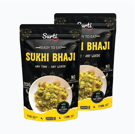 Sukhi Bhaji is a ready-to-eat dish that features a colorful array of mixed vegetables sautรฉed with spices such as cumin, mustard seeds, and turmeric. Each vegetable retains its natural flavors and nutrients, resulting in a flavorful ready-to-eat side dish that's both healthy and delicious. This classic Indian preparation is the perfect complement to chapati, puri, or rice, making it a versatile addition to any meal.
