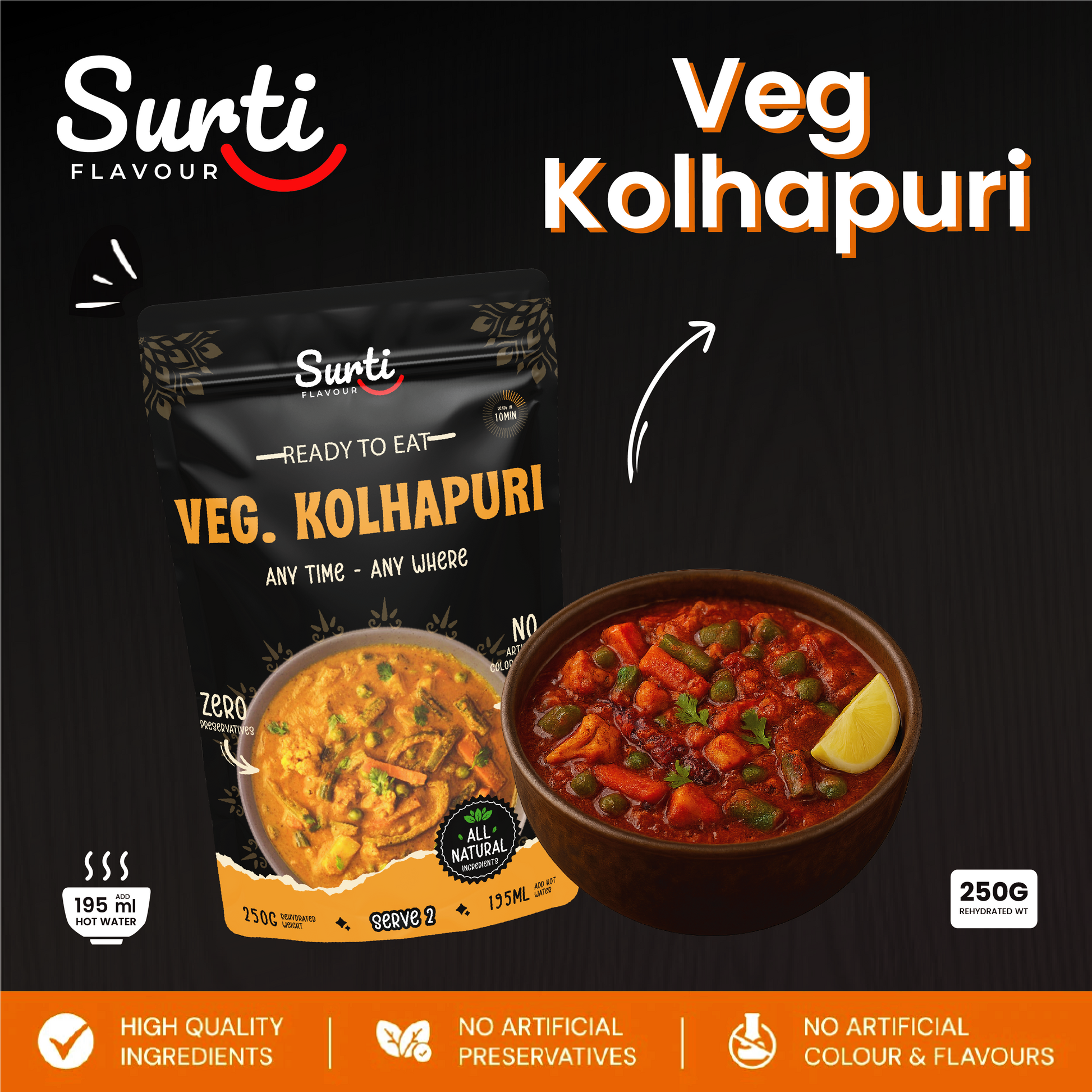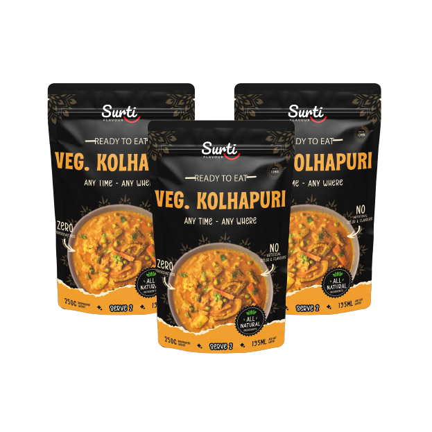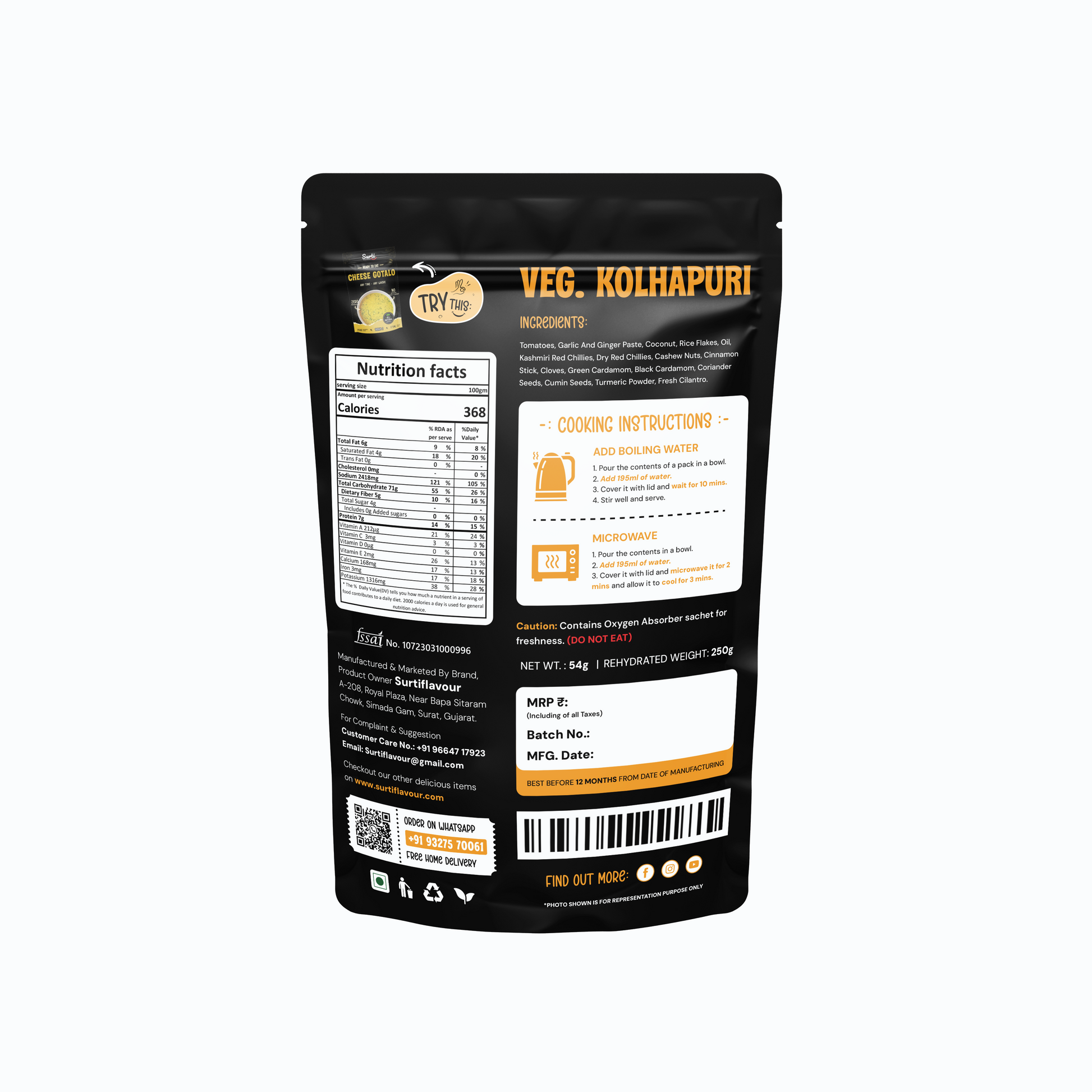 Veg Kolhapuri is a spicy Maharashtrian-style vegetable curry made with a flavorful blend of red chillies, coconut, and traditional Indian spices. This ready-to-eat version brings you all the bold flavors without the long prep — just heat and eat.